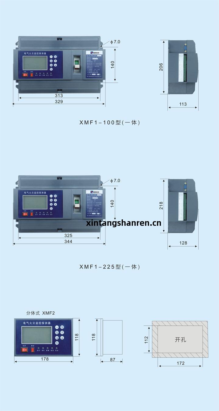 XMF1作(zuo)為獨立式電(dian)氣火(huo)災監(jian)控探(tan)測(ce)器(qi),為充分考慮(lv)安(an)裝(zhuang)使(shi)用的便(bian)捷(jie),方(fang)便(bian)連接(jie)進出線導線,而設計(ji)了(le)活(huo)動安(an)裝(zhuang)面(mian)板,在(zai)安(an)裝(zhuang)進出導線時(shi),面(mian)板可(ke)由(you)上(shang)撥開(kai),連接(jie)完畢扣(kou)上(shang)即可(ke)。註(zhu)意(yi):選(xuan)用XMF1-100型時(shi)連接(jie)導線的(de)接(jie)線端(duan)子(zi)最(zui)大(da)寬(kuan)度15mm,選(xuan)用XMF1-225型時(shi)連接(jie)導線的(de)接(jie)線端(duan)子(zi)最(zui)大(da)寬(kuan)度18mm。設備(bei)采用4只(zhi)M6螺(luo)釘(ding)固定(ding)安(an)裝(zhuang)。