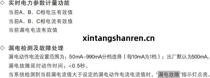 ◇ 電(dian)力參數(shu)計(ji)量功能:實(shi)時(shi)測(ce)量供電(dian)線(xian)路(lu)的(de)電(dian)壓(ya)、電(dian)流(liu)、漏(lou)電(dian)流(liu)數(shu)據(ju)。